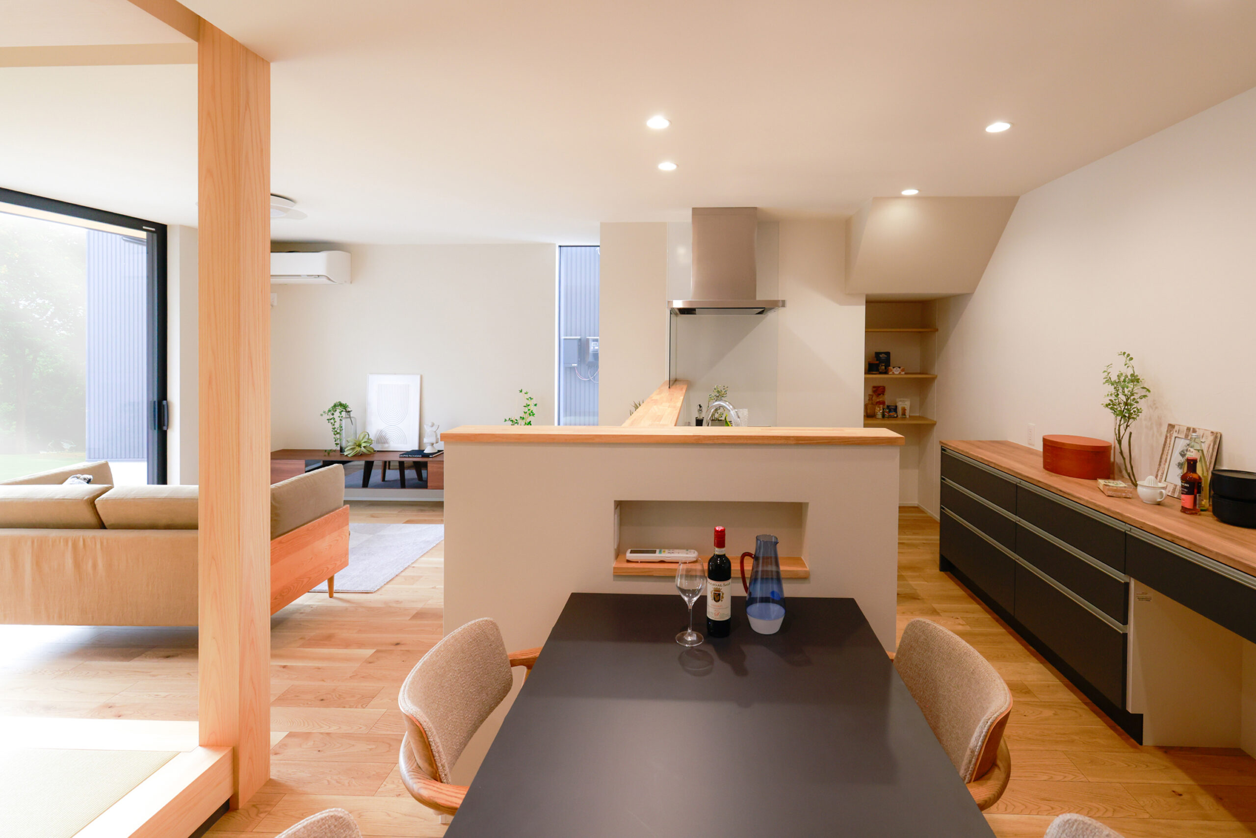 小上がりの和室がくつろぎの空間を演出し、現代の暮らしに調和します。